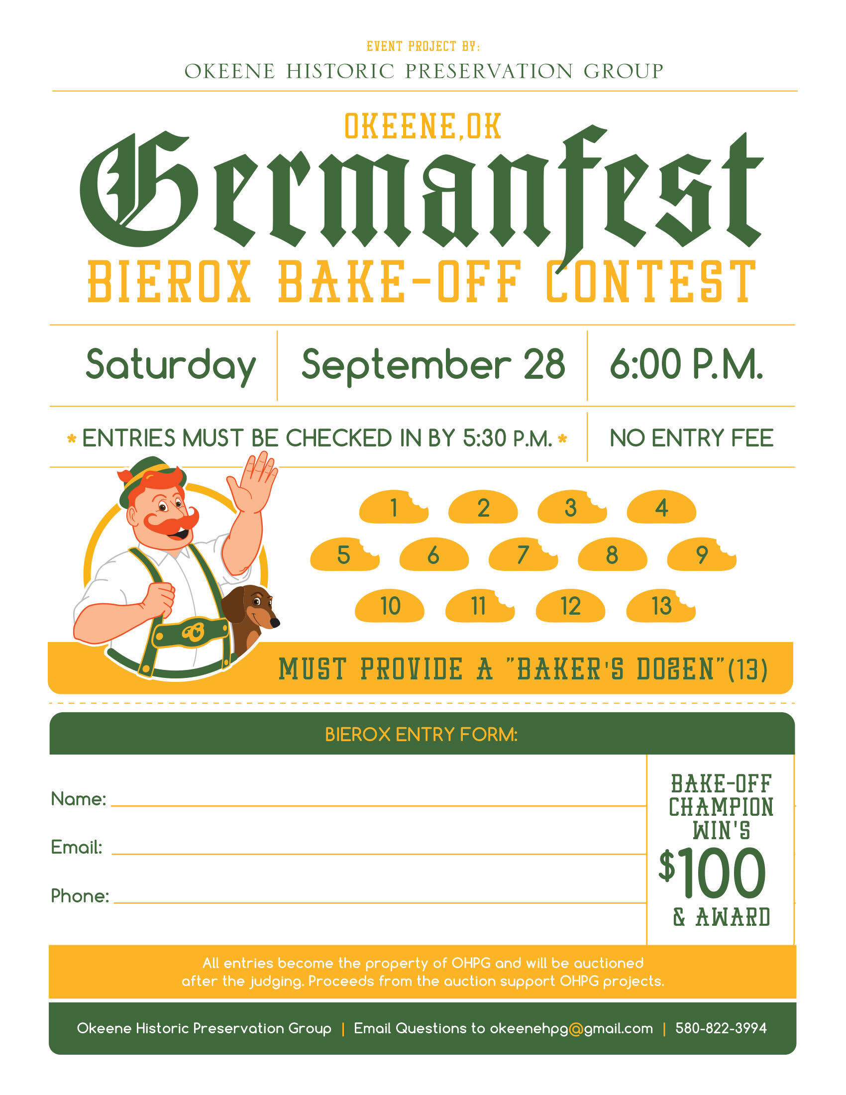 Each entry must include a Baker's Dozen (13) Bierox!